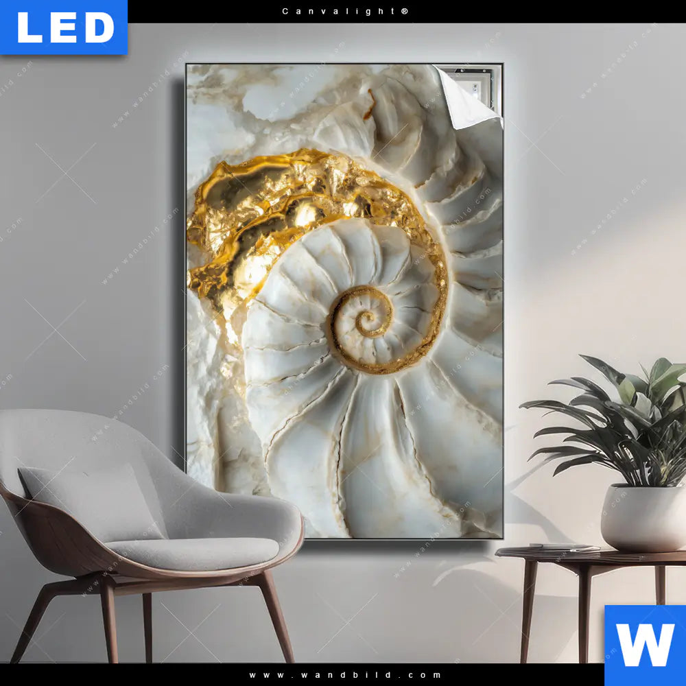 Canvalight® Leuchtbild | Muschelspirale mit Gold | Hochformat
