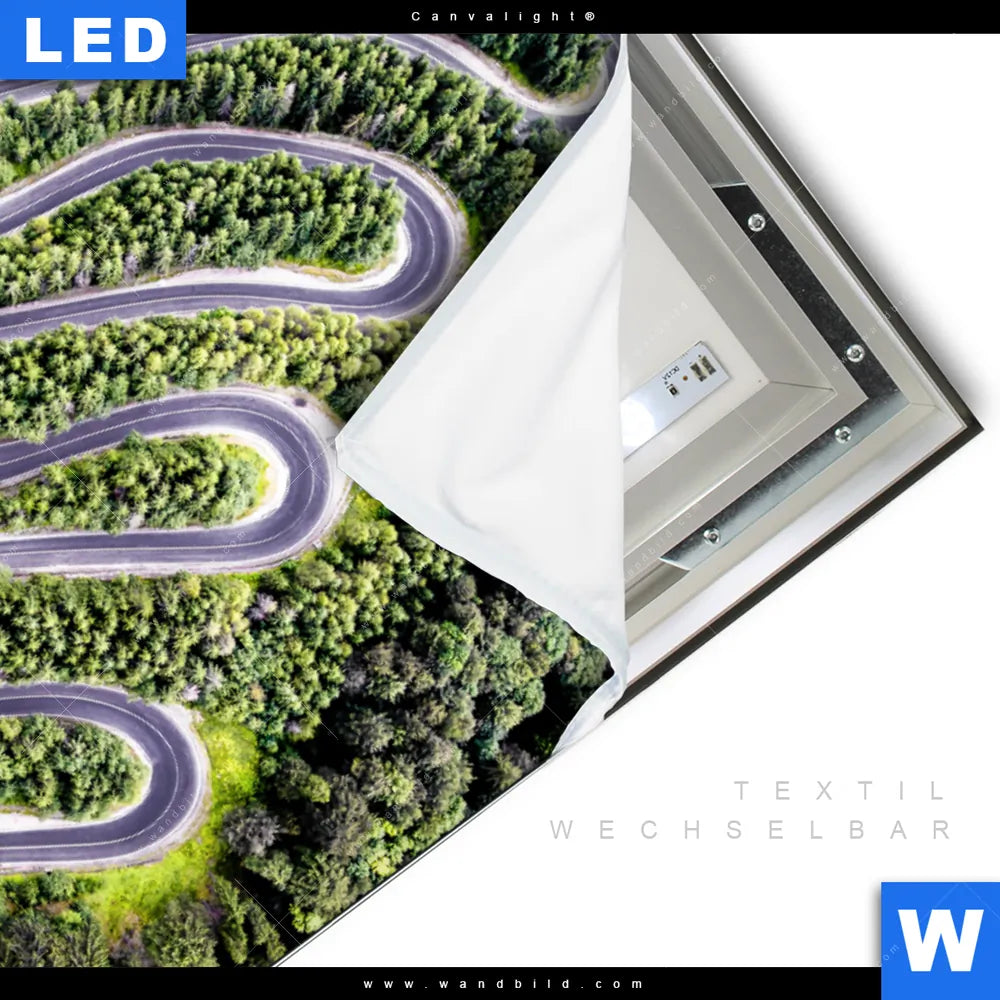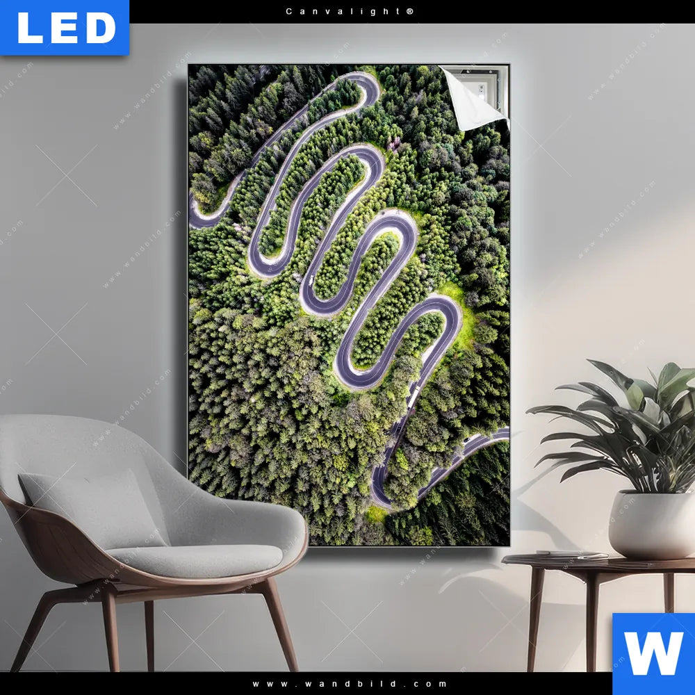 Canvalight® TEX Leuchtbild | Wald & Straße Luftaufnahme | Hochformat