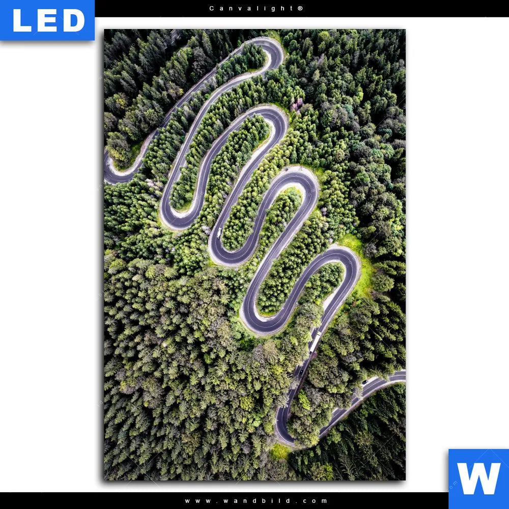Canvalight® Leuchtbild | Wald & Straße Luftaufnahme | Hochformat
