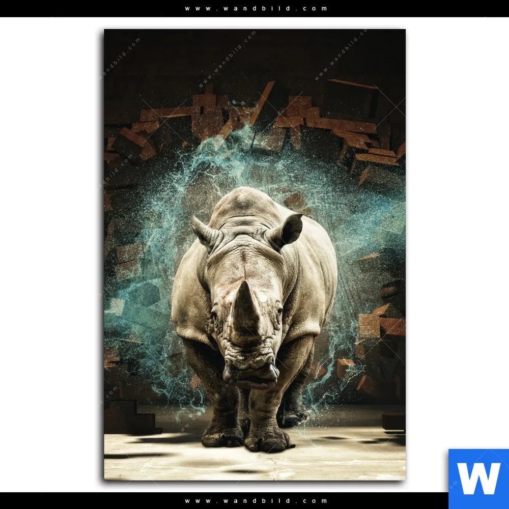 Spannbild | Nashorn zerstört Wand | Hochformat