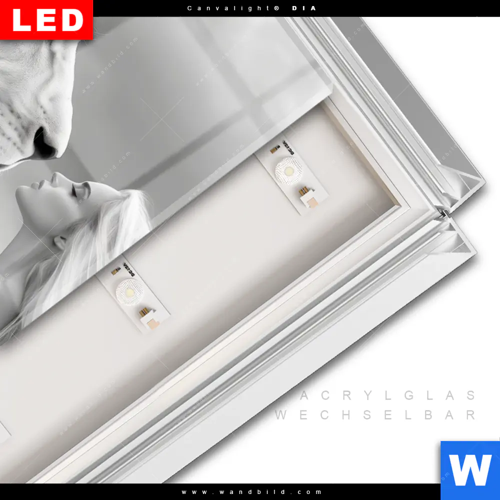 LED-Glasbild mit austauschbarem Acrylglas-Druck (Wechselbild)