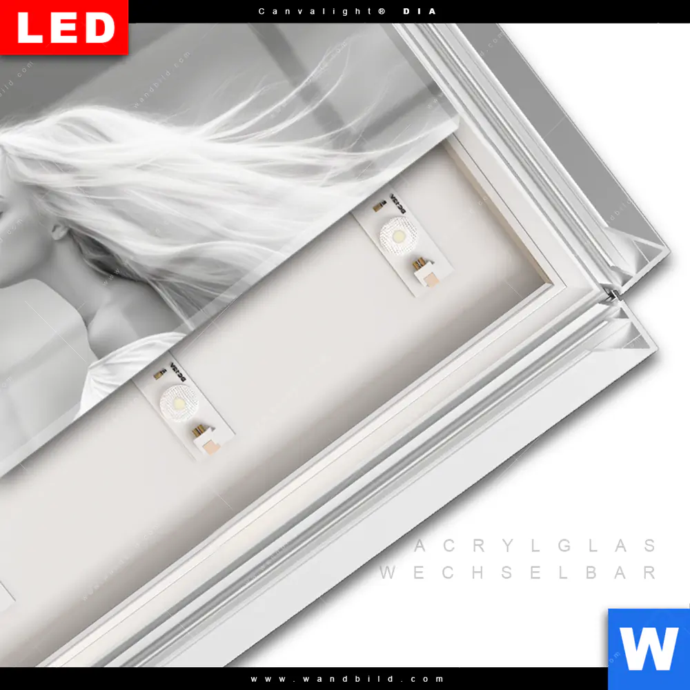 LED-Glasbild mit austauschbarem Acrylglas-Druck (Wechselbild)