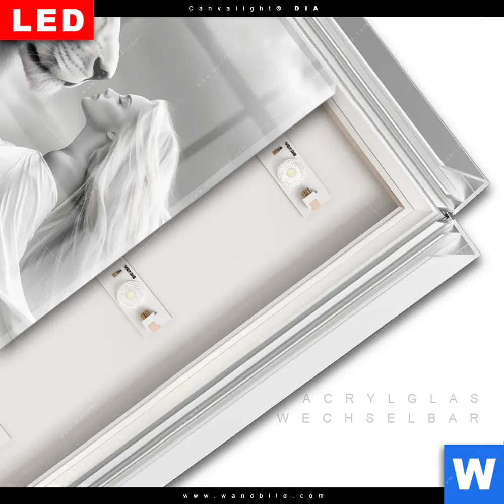 LED-Glasbild mit austauschbarem Acrylglas-Druck (Wechselbild)
