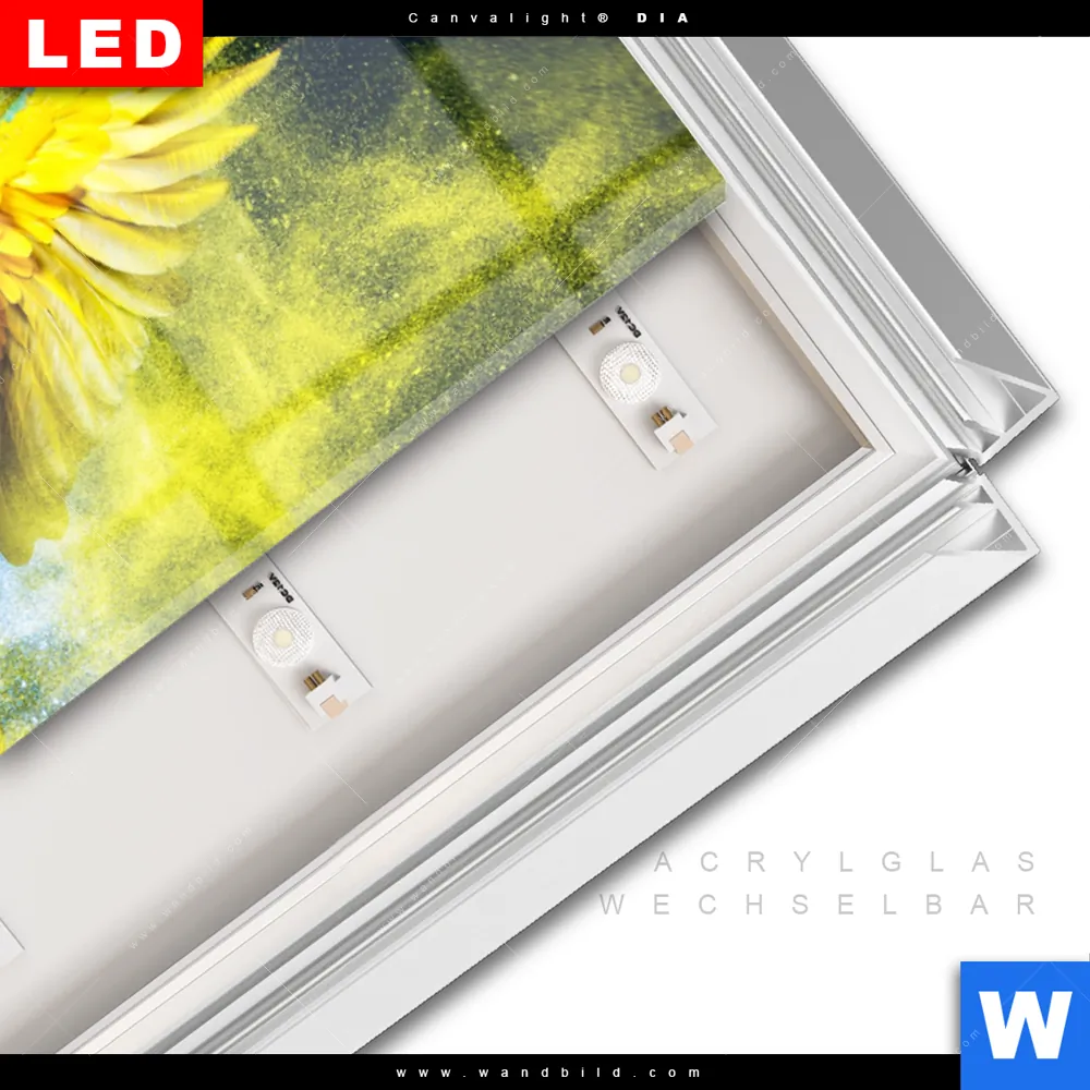 LED-Glasbild mit austauschbarem Acrylglas-Druck (Wechselbild)