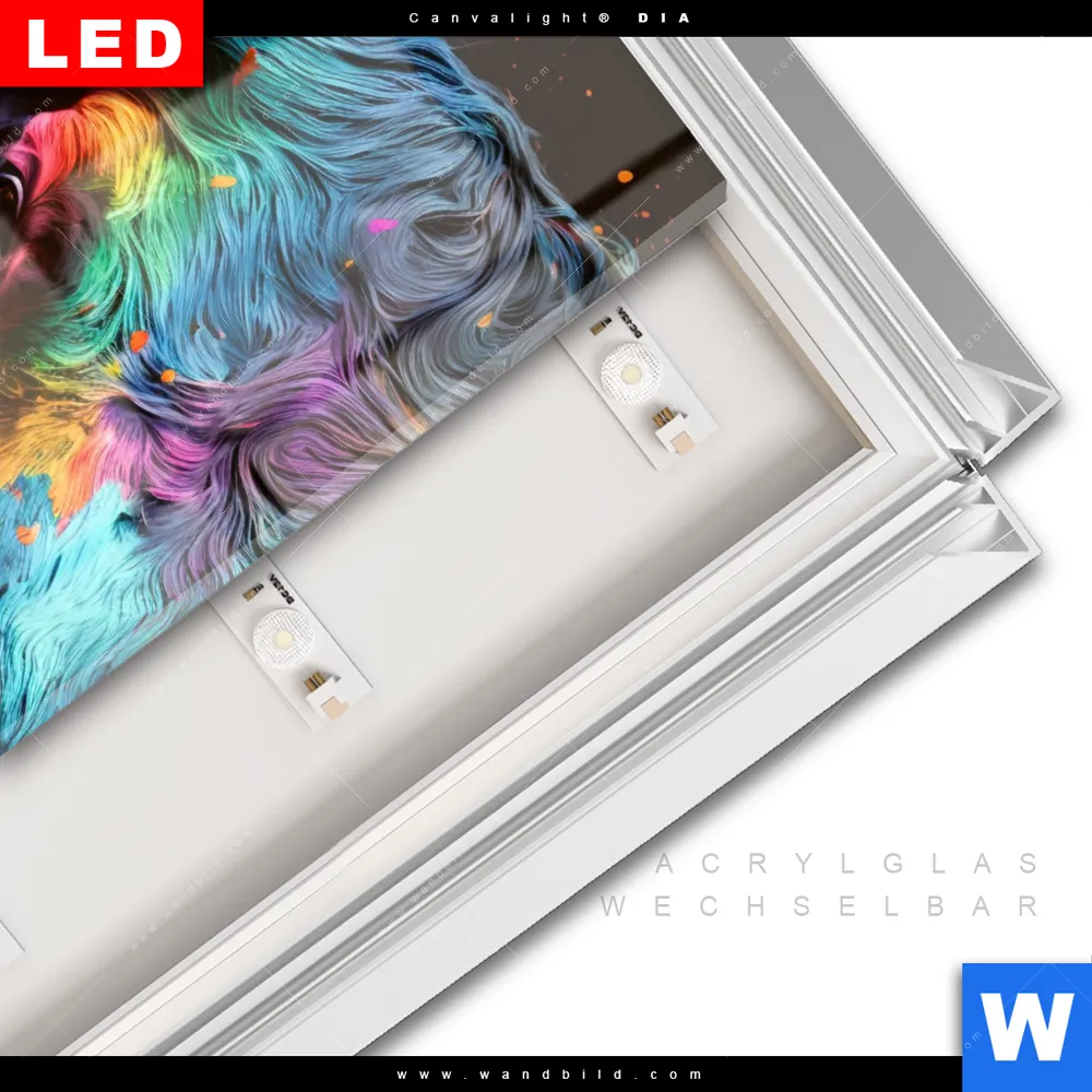 LED-Glasbild mit austauschbarem Acrylglas-Druck (Wechselbild)