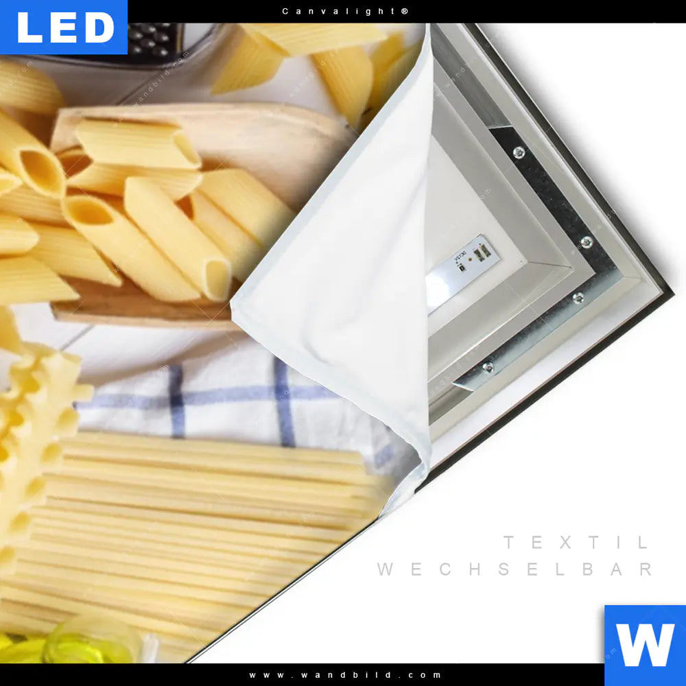 Canvalight® TEX Leuchtbild | Italienische Pasta Vielfalt | Schmal