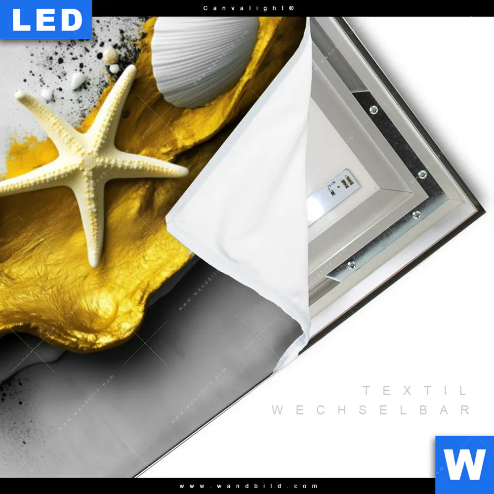 Canvalight® TEX Leuchtbild | Maritime Muschel-Kunst | Querformat