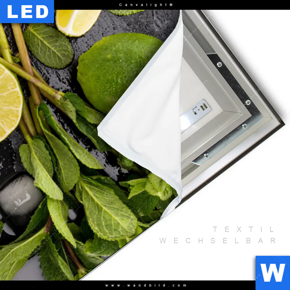 LED-Textilrahmen-Bild mit austauschbarem Essen - Trinken Textil-Druck (Wechselbild)