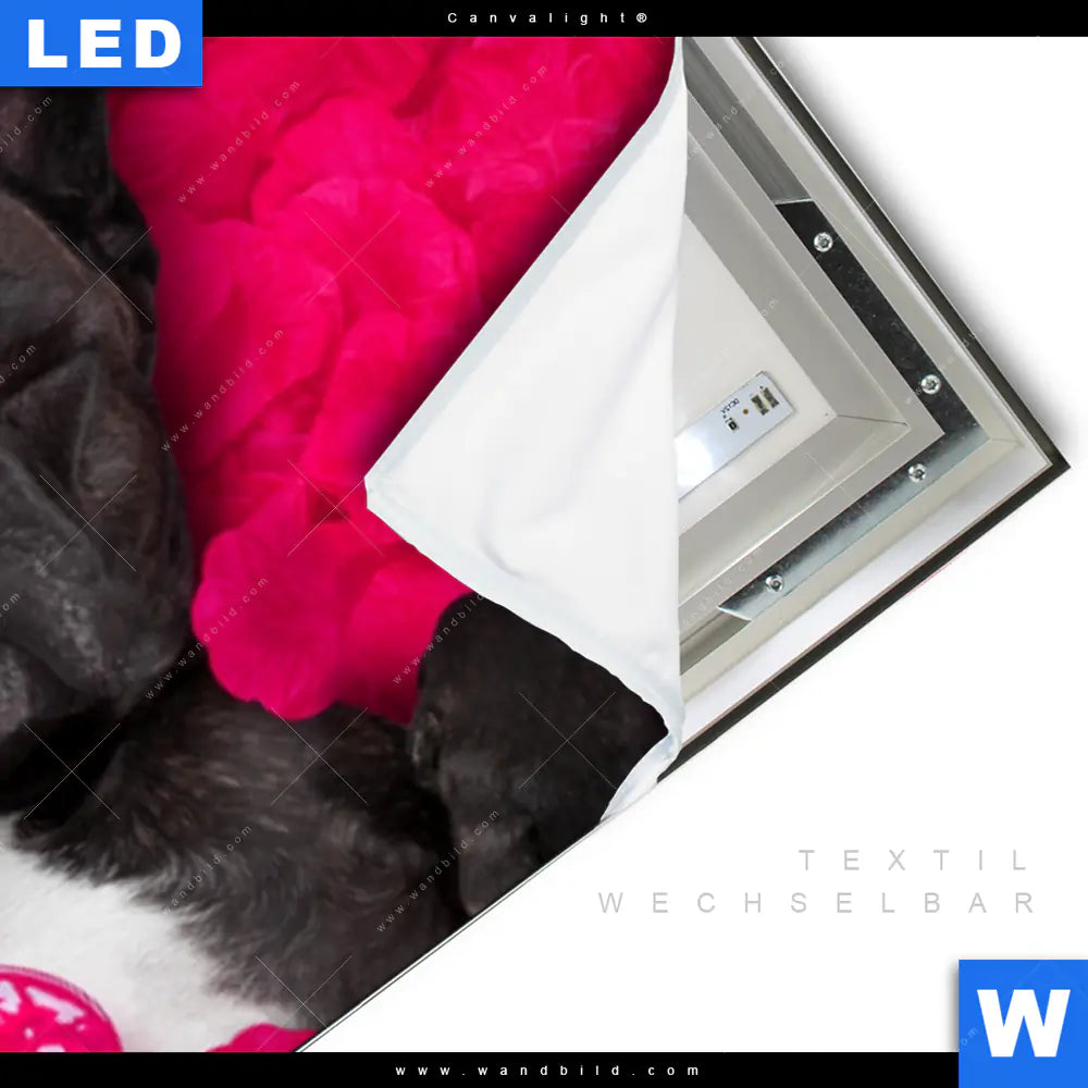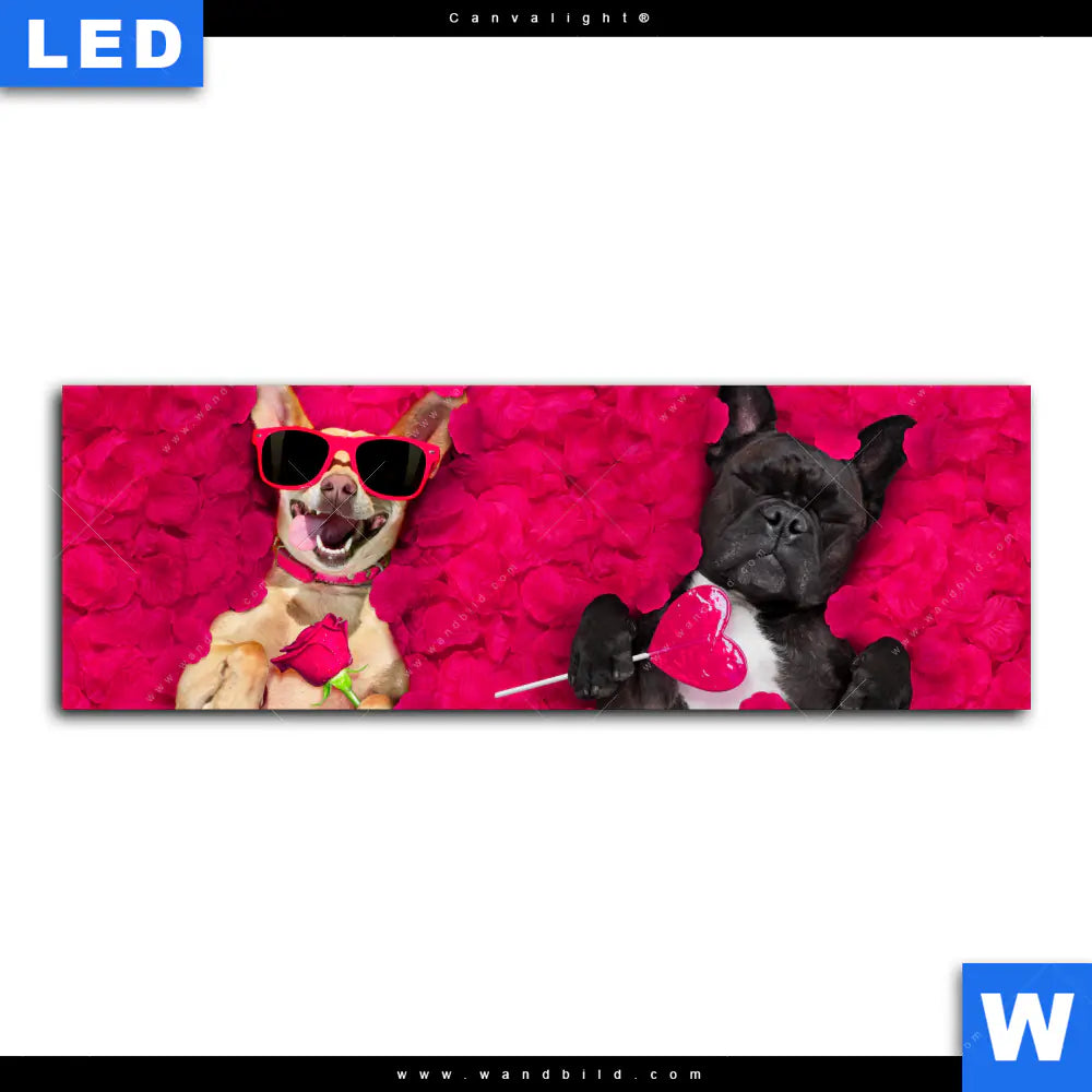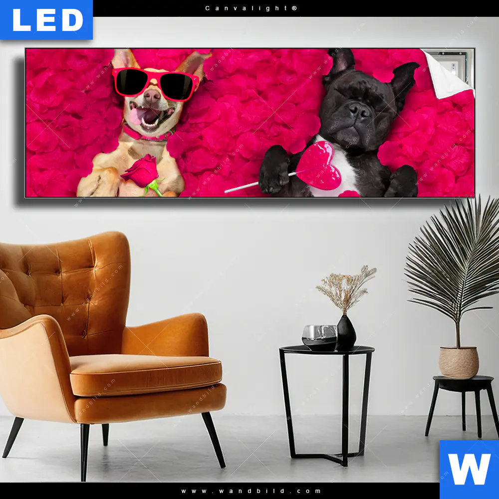 Canvalight® TEX Leuchtbild | Romantik mit süßen Hunden | Panorama