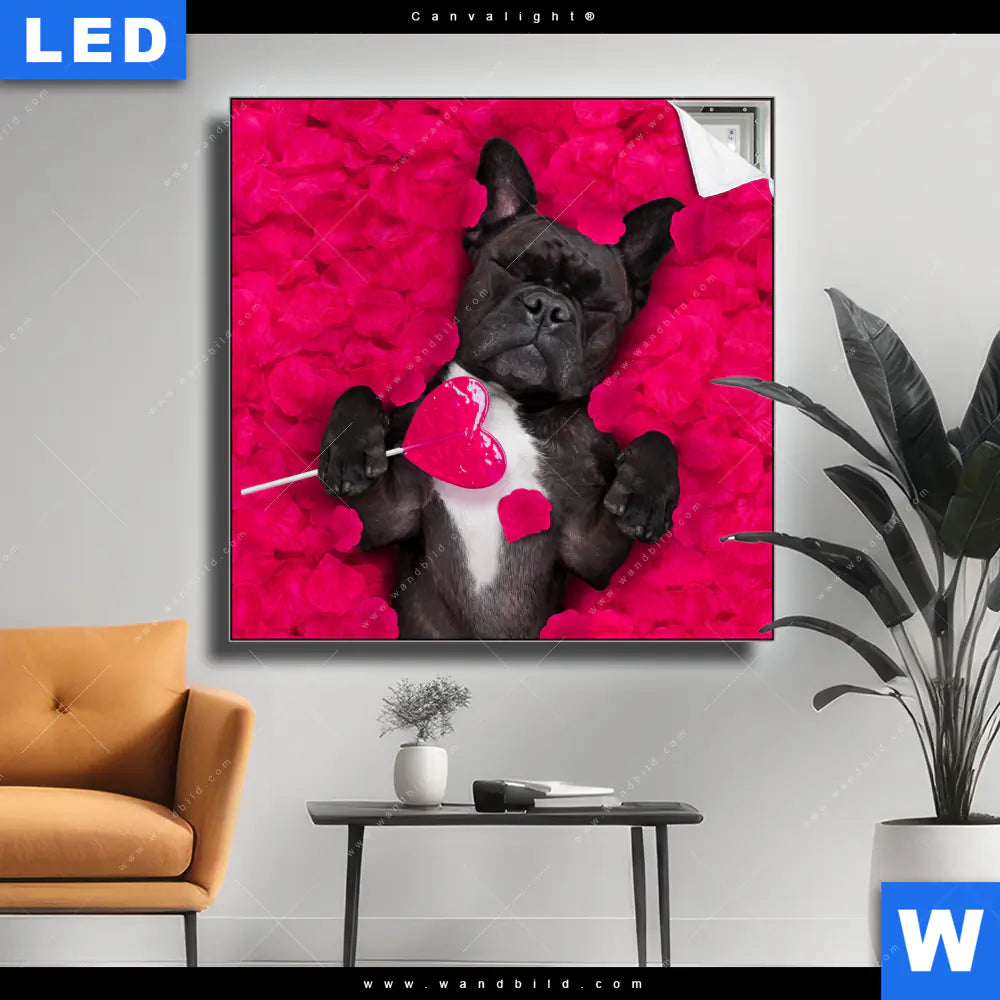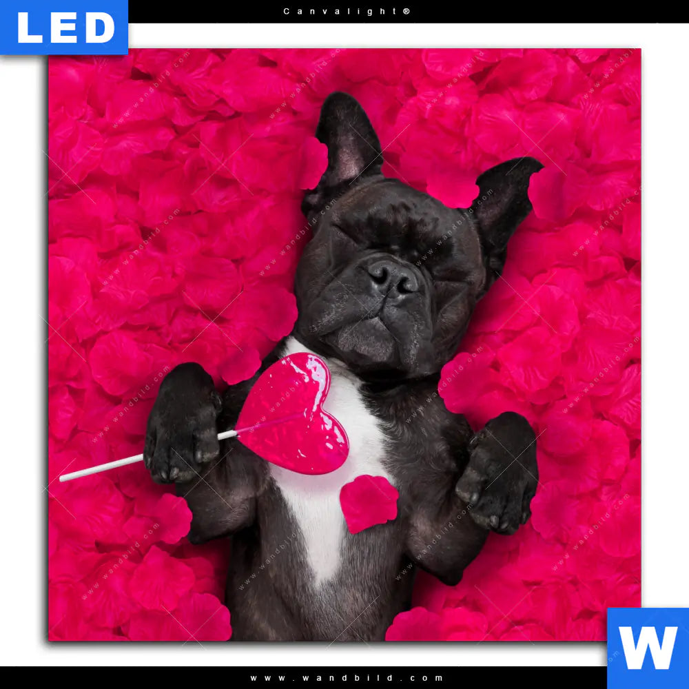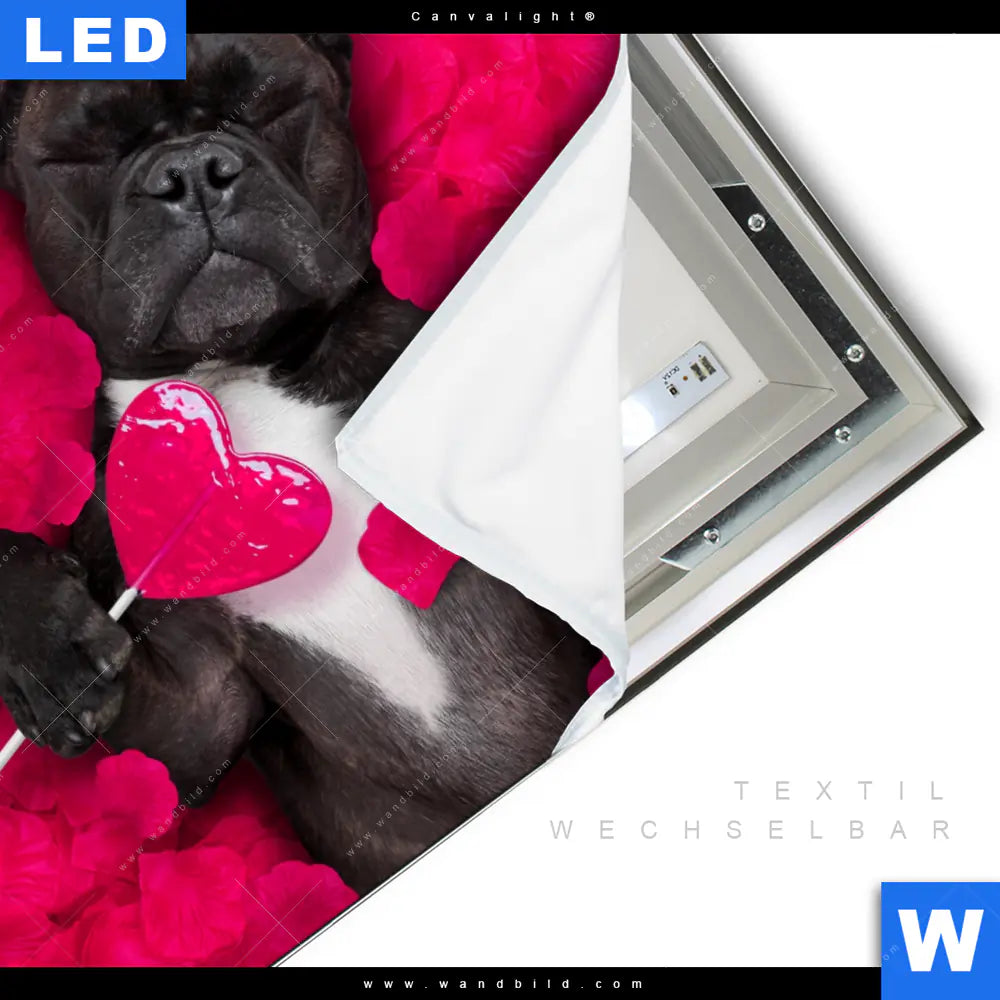 Canvalight® TEX Leuchtbild | Romantik mit süßen Hunden | Quadrat