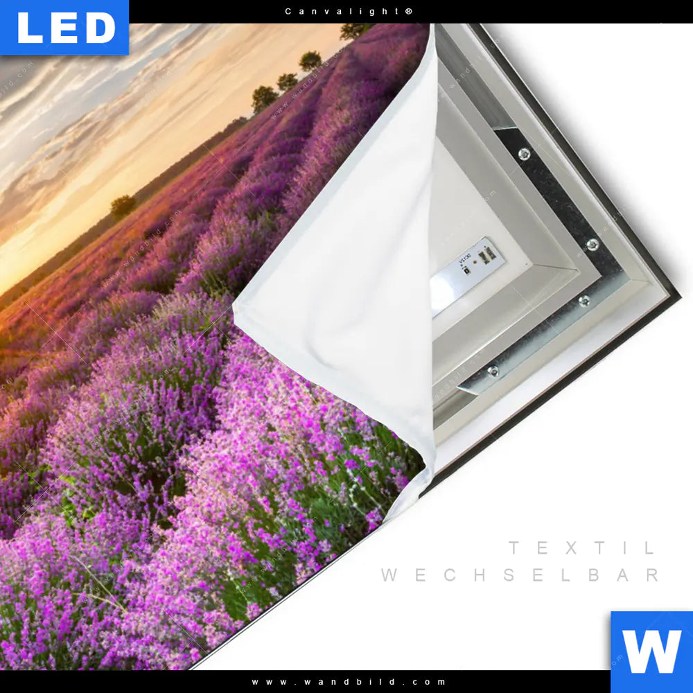 LED-Textilrahmen-Bild mit austauschbarem Landschaften Textil-Druck (Wechselbild)