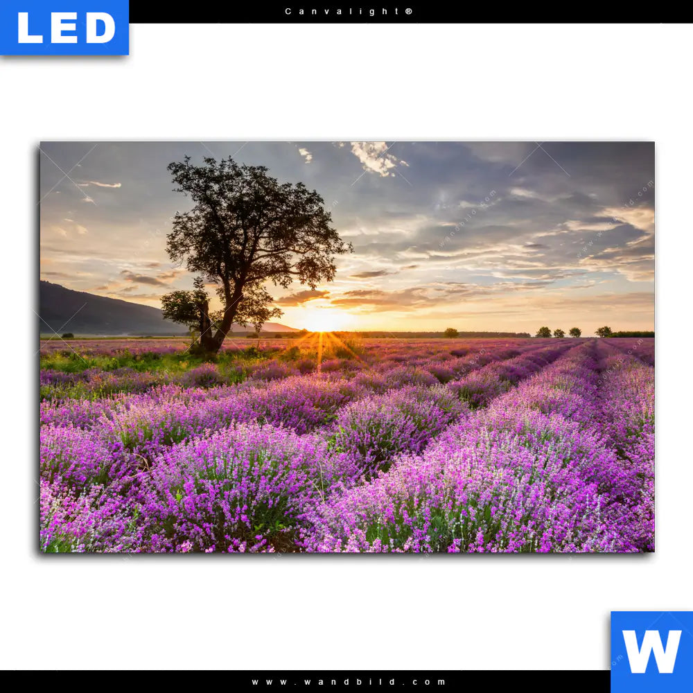 Canvalight® Leuchtbild | Sonnenaufgang im Lavendelfeld | Querformat