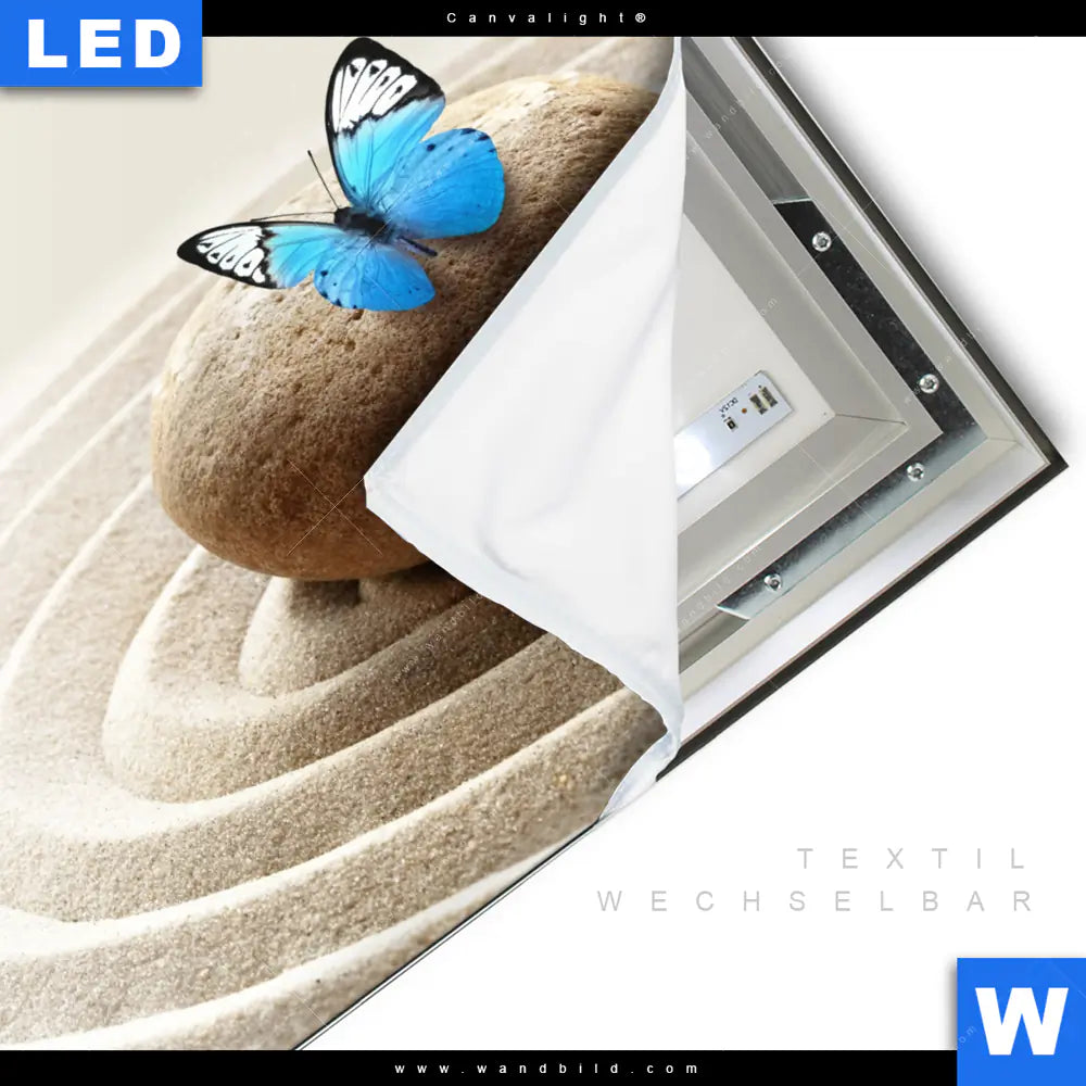 Canvalight® TEX Leuchtbild | Zen Stein mit Schmetterling | Quadrat