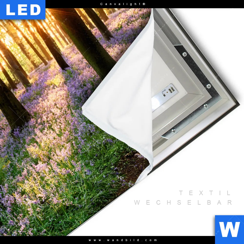 LED-Textilrahmen-Bild mit austauschbarem Blumen - Botanik, Landschaften, Wald - Bäume Textil-Druck (Wechselbild)