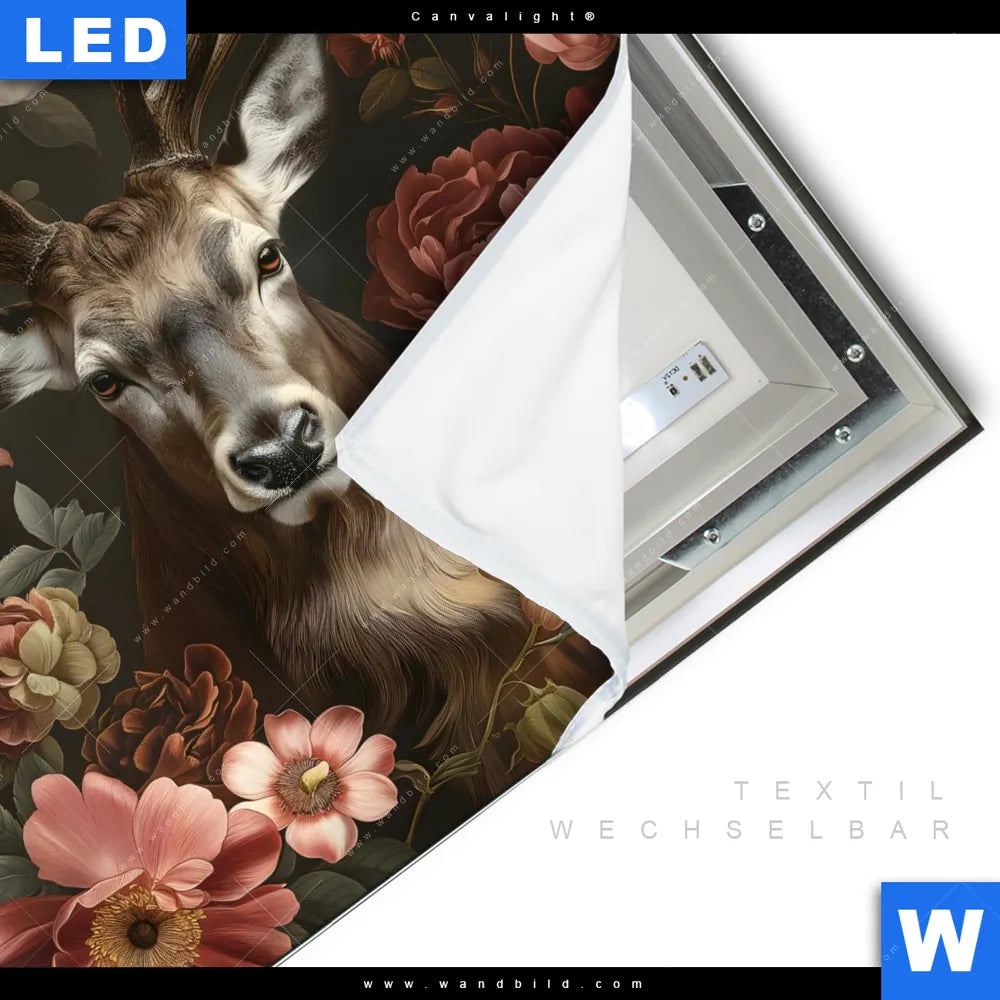 Canvalight® TEX Leuchtbild | Friedlicher Hirsch und Blüten | Quadrat