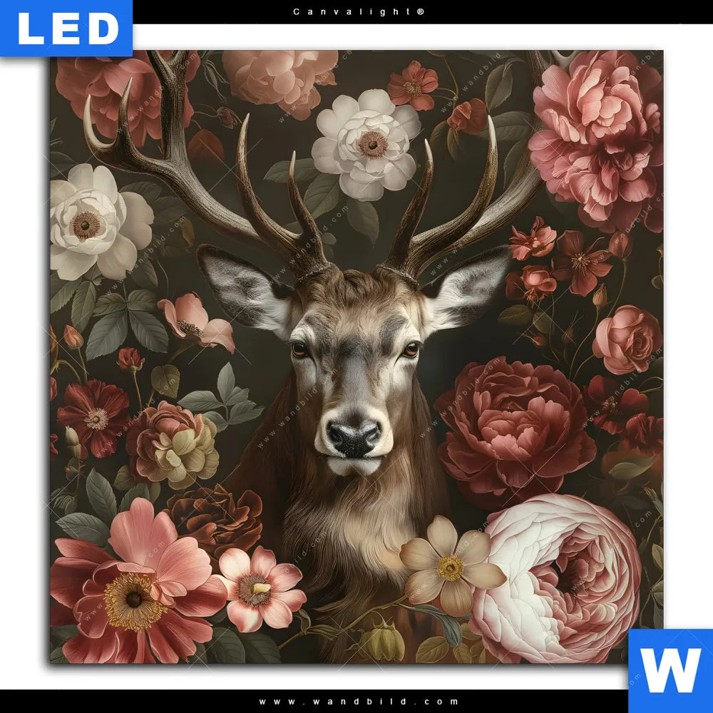 Canvalight® Leuchtbild | Friedlicher Hirsch und Blüten | Quadrat