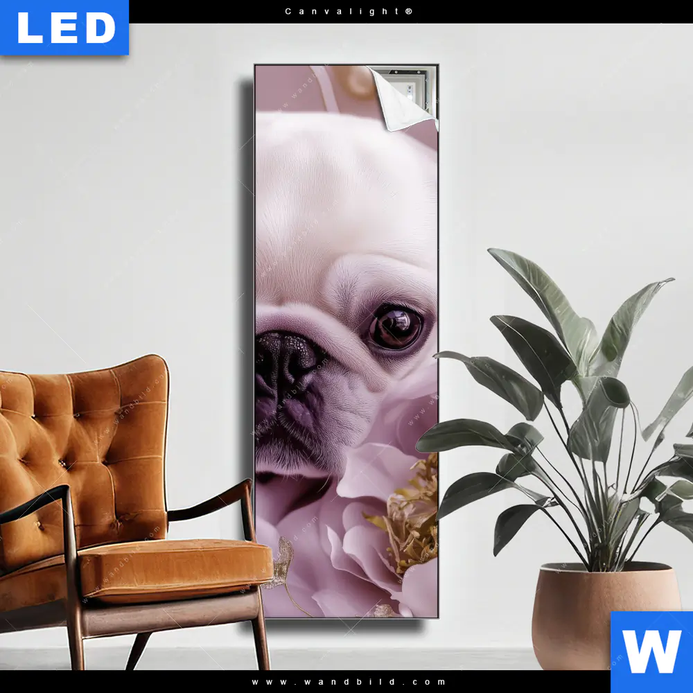 Canvalight® Leuchtbild | Mops im Blütenmeer | Schmal