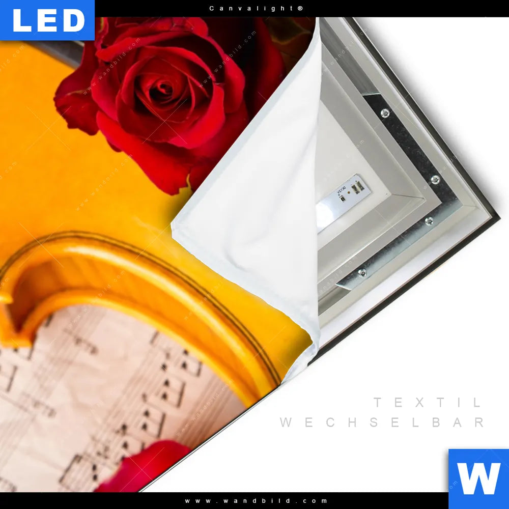 Canvalight® TEX Leuchtbild | Violine & Rose | Querformat