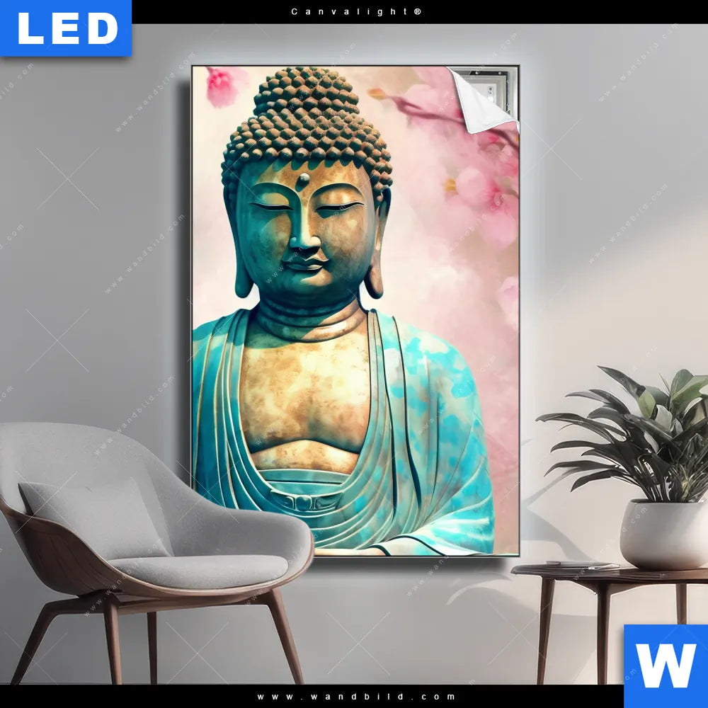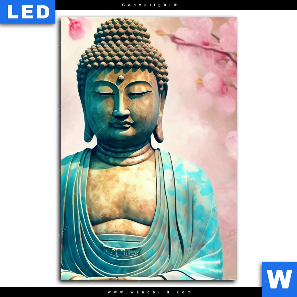 Canvalight® Leuchtbild | Buddha Statue mit Kirschblüten | Hochformat