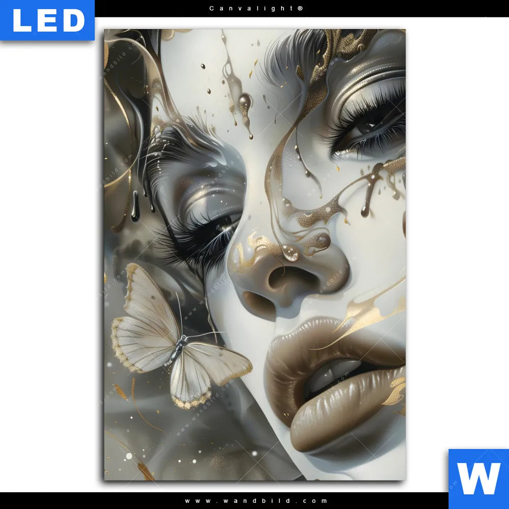 Canvalight® Leuchtbild | Paola - Porträt mit Schmetterlingen | Hochformat
