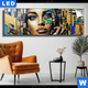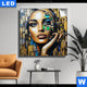 Canvalight® TEX Leuchtbild | Zoe - Mosaikgesicht im Großstadtlicht | Hochformat