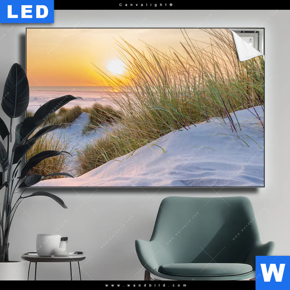Canvalight® Leuchtbild | Goldenes Licht über Sanddünen | Querformat