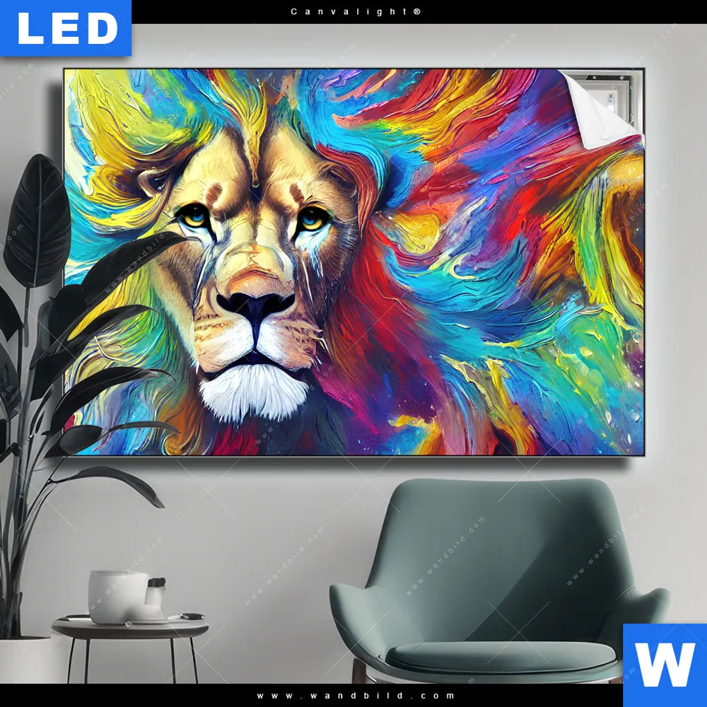 Canvalight® Leuchtbild | Abstrakter Löwenkopf | Querformat