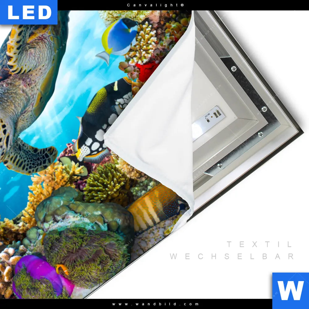 LED-Textilrahmen-Bild mit austauschbarem Strand - Meer, Tierwelt Textil-Druck (Wechselbild)