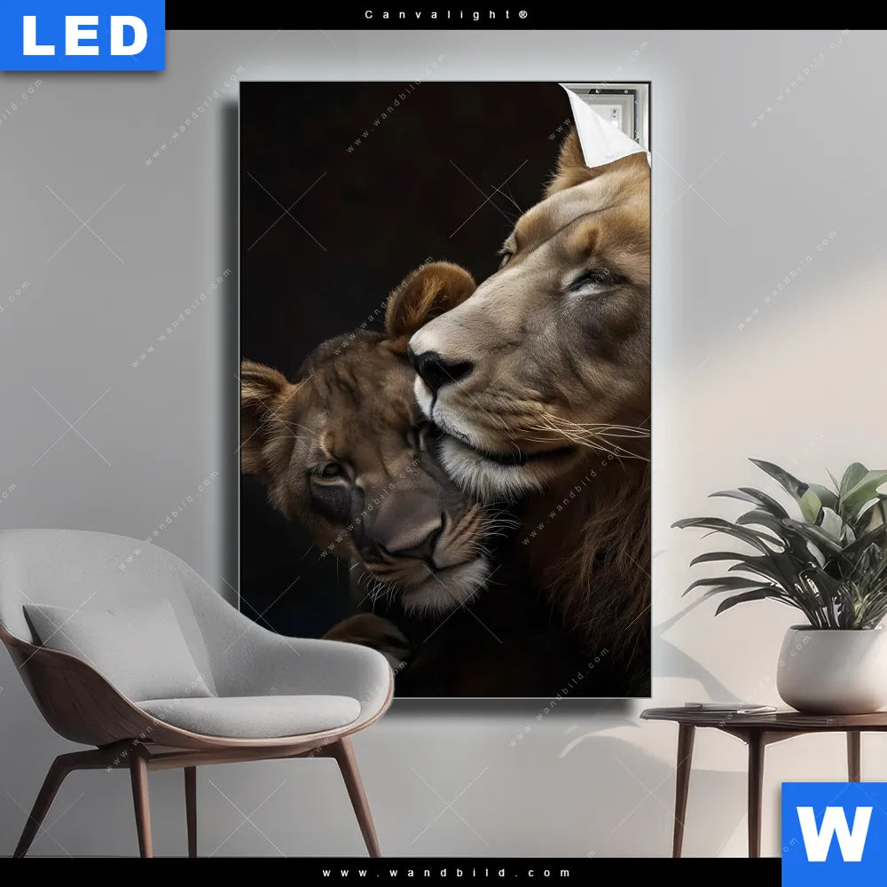 Canvalight® TEX Leuchtbild | Löwen - Stärke und Zärtlichkeit | Hochformat