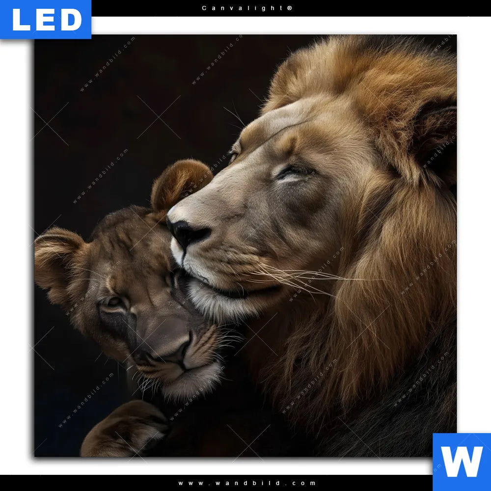 Canvalight® TEX Leuchtbild | Löwen - Stärke und Zärtlichkeit | Quadrat