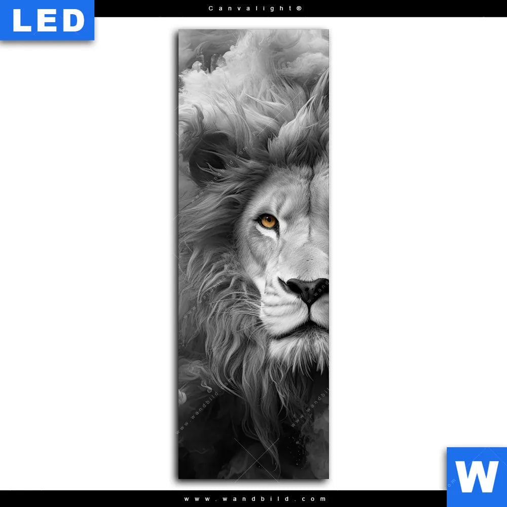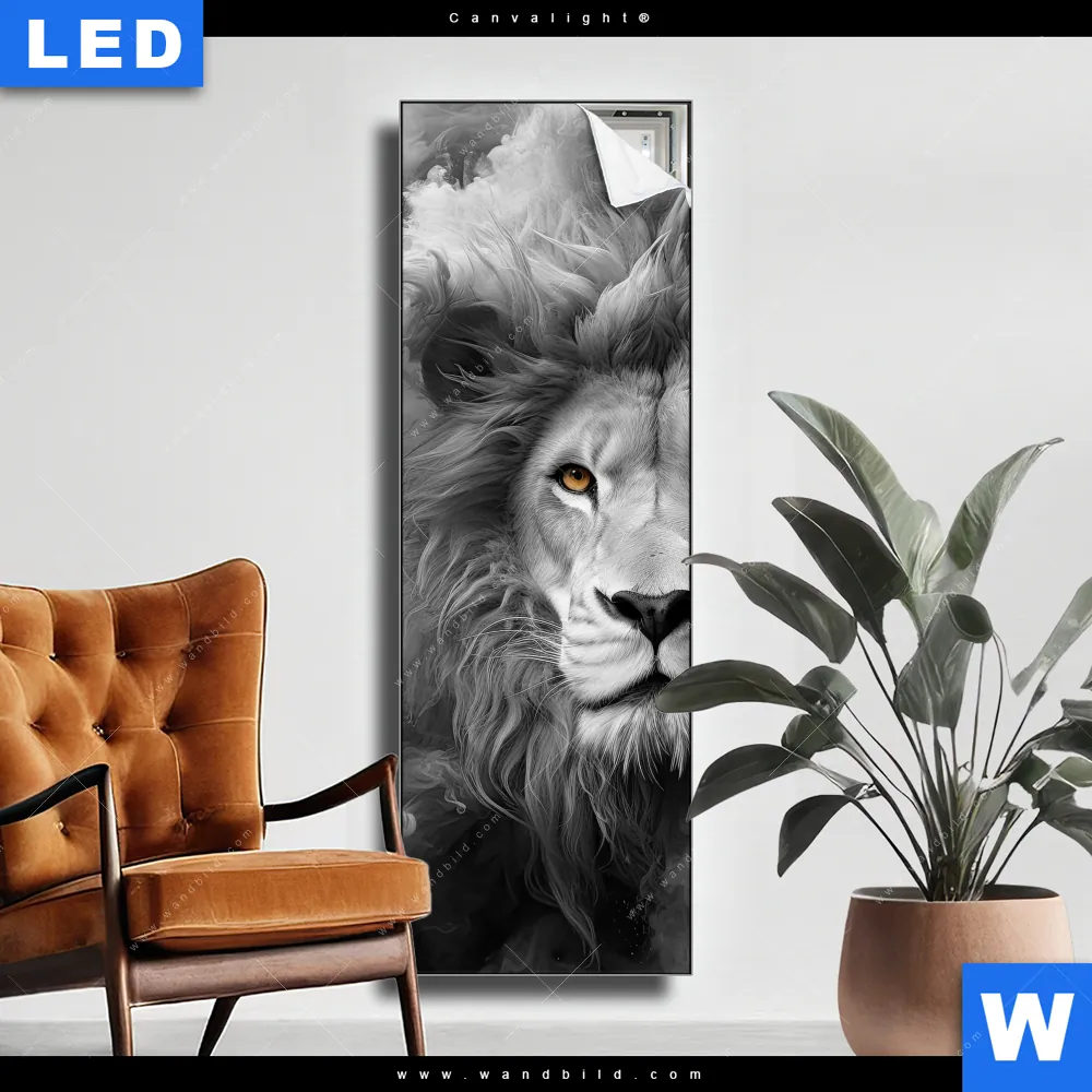 Canvalight® Leuchtbild | Löwengesicht in Rauch | Schmal