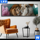 Canvalight® TEX Leuchtbild | Sanfte Löwenmomente in buntem Nebel | Hochformat