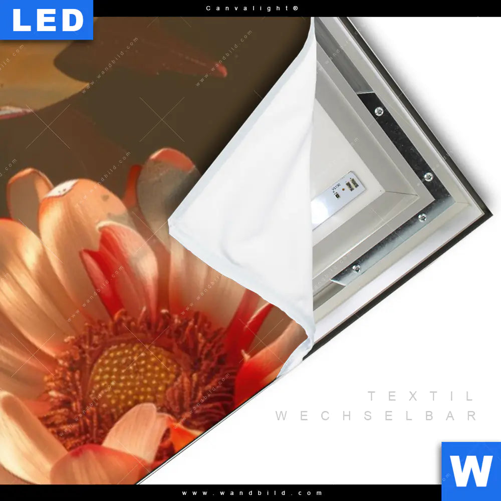 LED-Textilrahmen-Bild mit austauschbarem Buddha - Feng Shui, Blumen - Botanik Textil-Druck (Wechselbild)