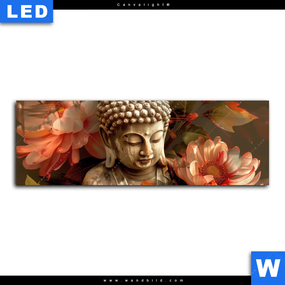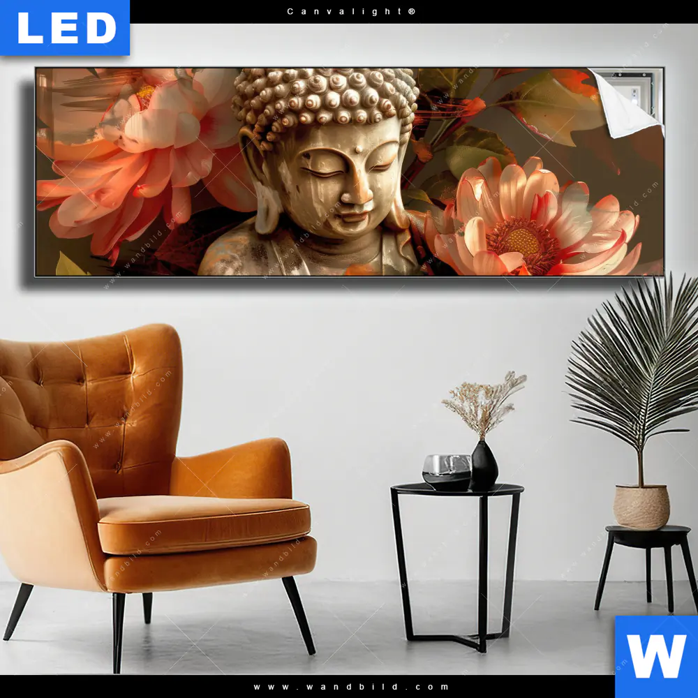 Canvalight® Leuchtbild | Abstrakter Buddha & Blumen | Panorama