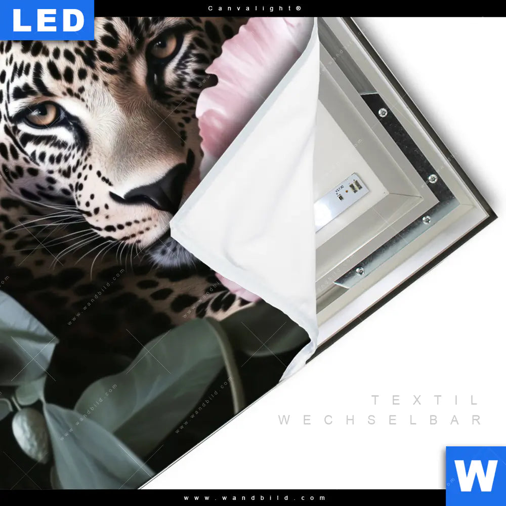 Canvalight® TEX Leuchtbild | Blumen und Raubkatzenmagie | Quadrat