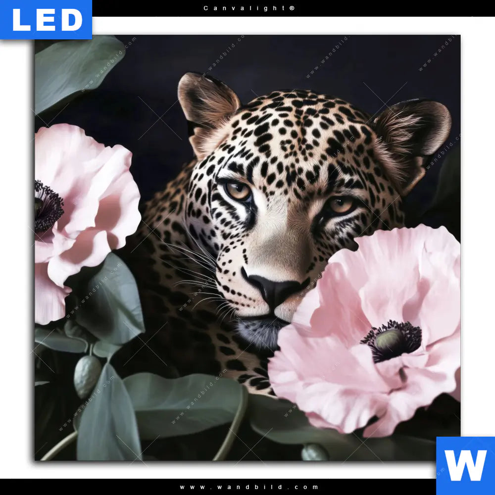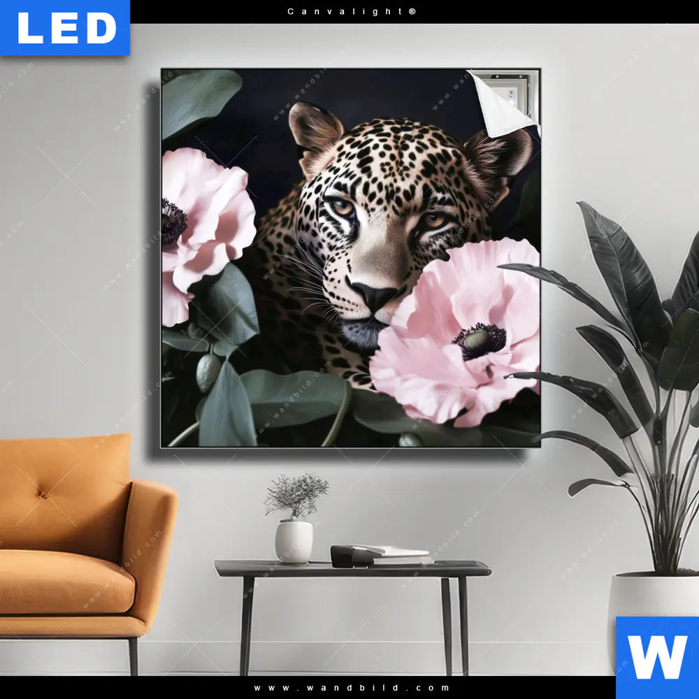 Canvalight® Leuchtbild | Blumen und Raubkatzenmagie | Quadrat