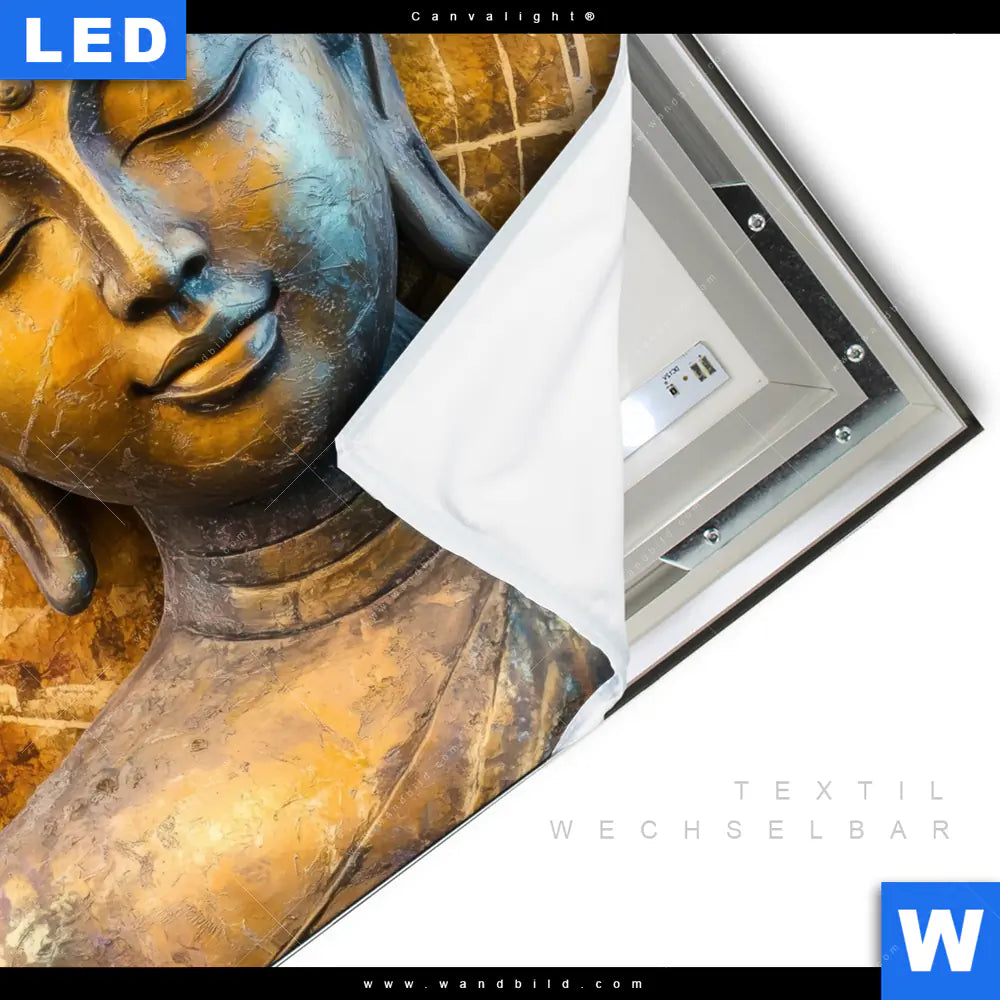 LED-Textilrahmen-Bild mit austauschbarem Buddha - Feng Shui Textil-Druck (Wechselbild)