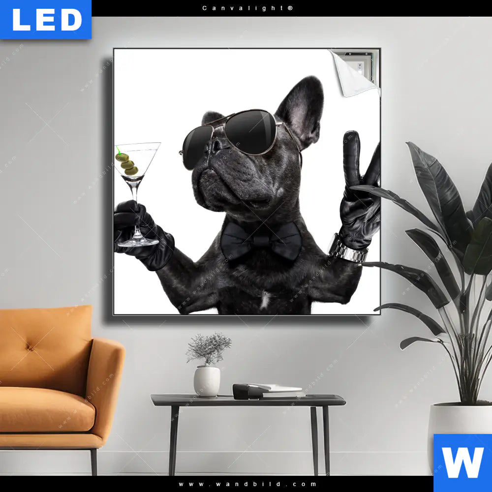 Canvalight® Leuchtbild | Bulldogge mit Martini | Quadrat