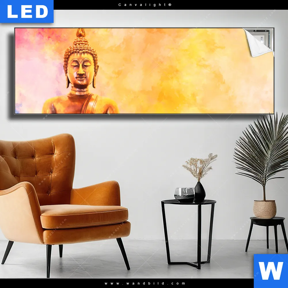 Canvalight® TEX Leuchtbild | Bunter Buddha No.3 | Panorama