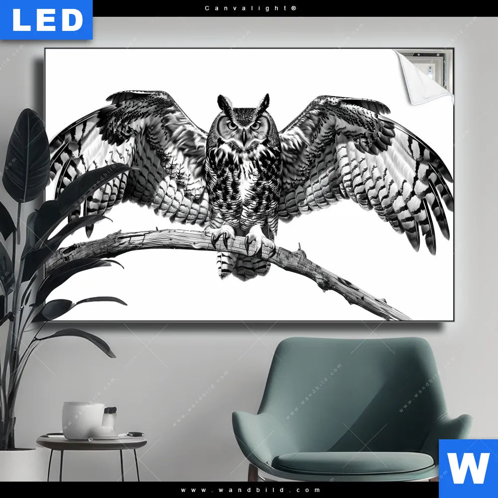 Canvalight® Leuchtbild | Eule auf Ast | Querformat