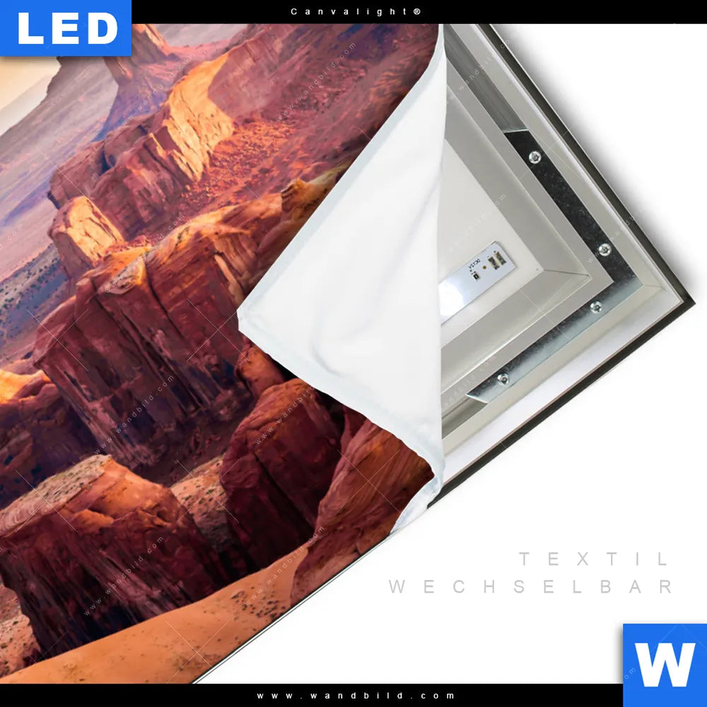 LED-Textilrahmen-Bild mit austauschbarem Landschaften Textil-Druck (Wechselbild)