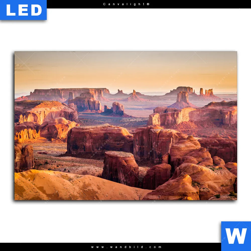 Canvalight® TEX Leuchtbild | Felsen bei Sonnenuntergang | Querformat