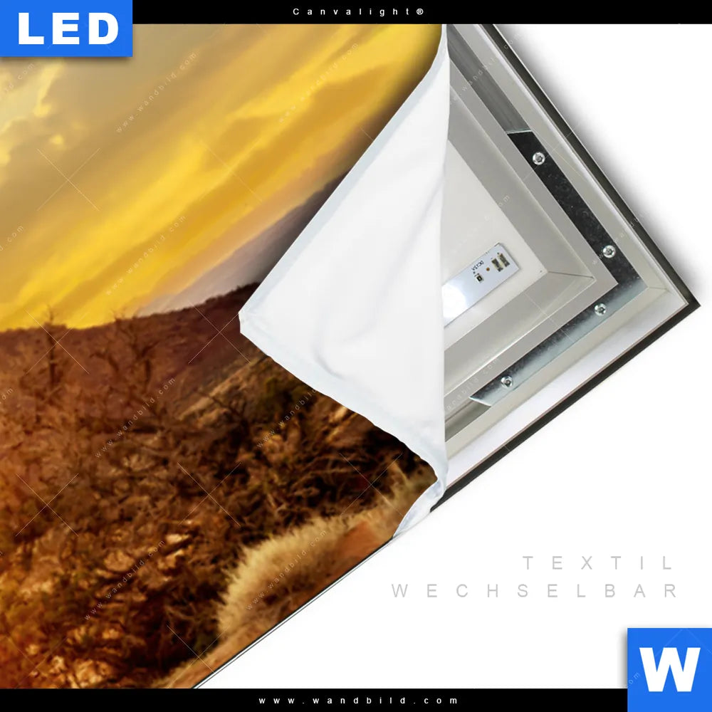LED-Textilrahmen-Bild mit austauschbarem Landschaften Textil-Druck (Wechselbild)