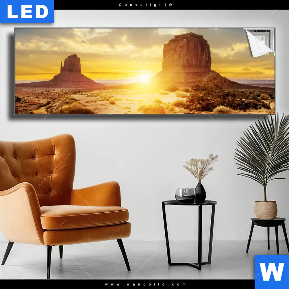 Canvalight® TEX Leuchtbild | Felsen in Wüste | Panorama