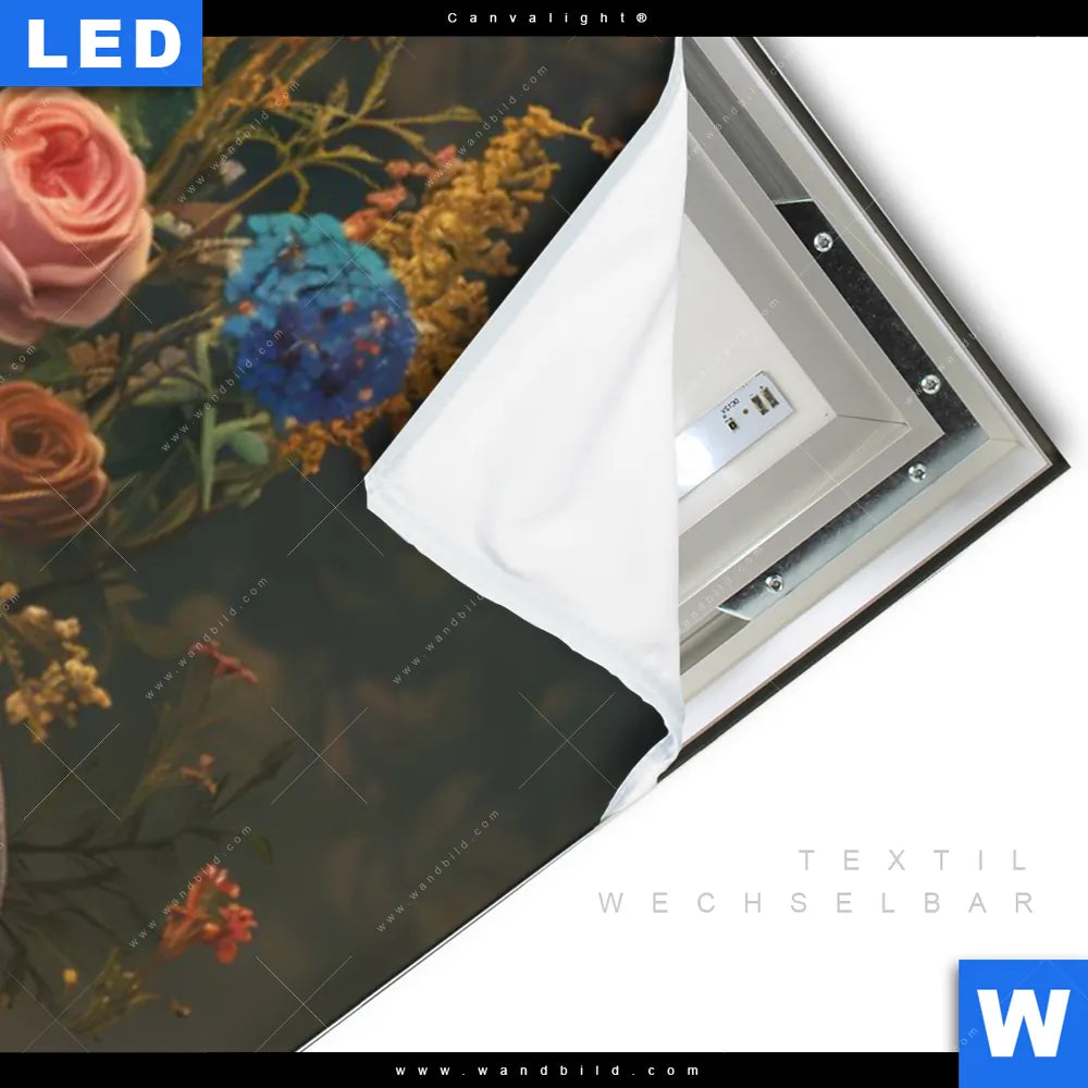LED-Textilrahmen-Bild mit austauschbarem Tierwelt, Blumen - Botanik Textil-Druck (Wechselbild)
