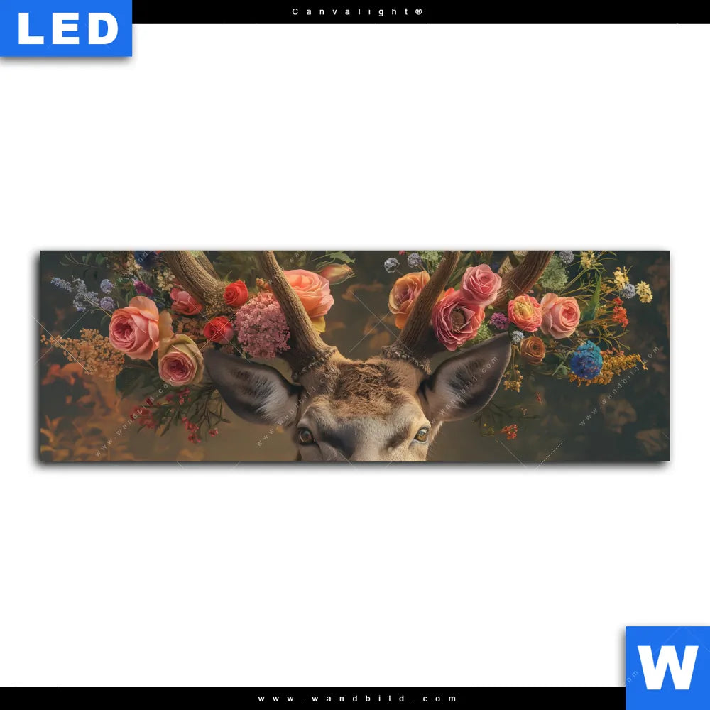 Canvalight® Leuchtbild | Hirsch mit floralem Geweih | Panorama