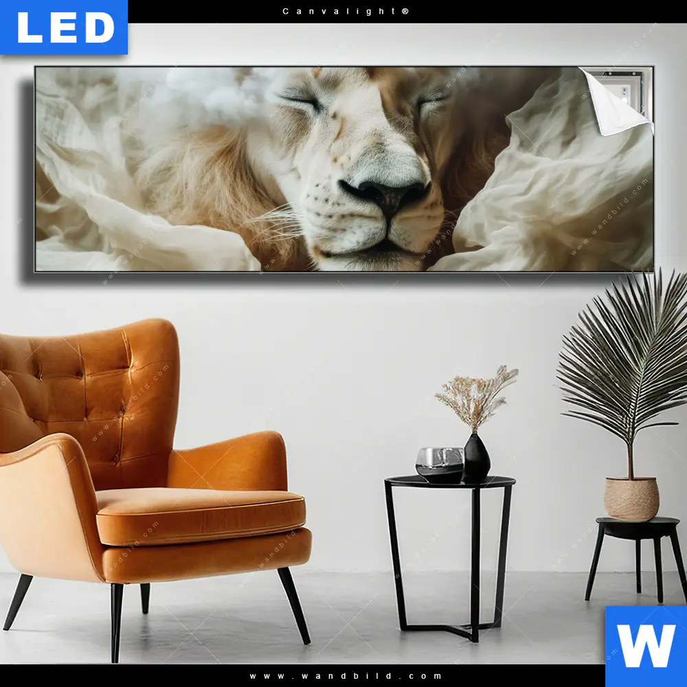 Canvalight® Leuchtbild | Löwe sanft umhüllt | Panorama