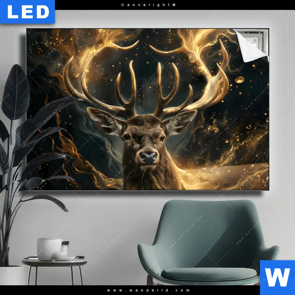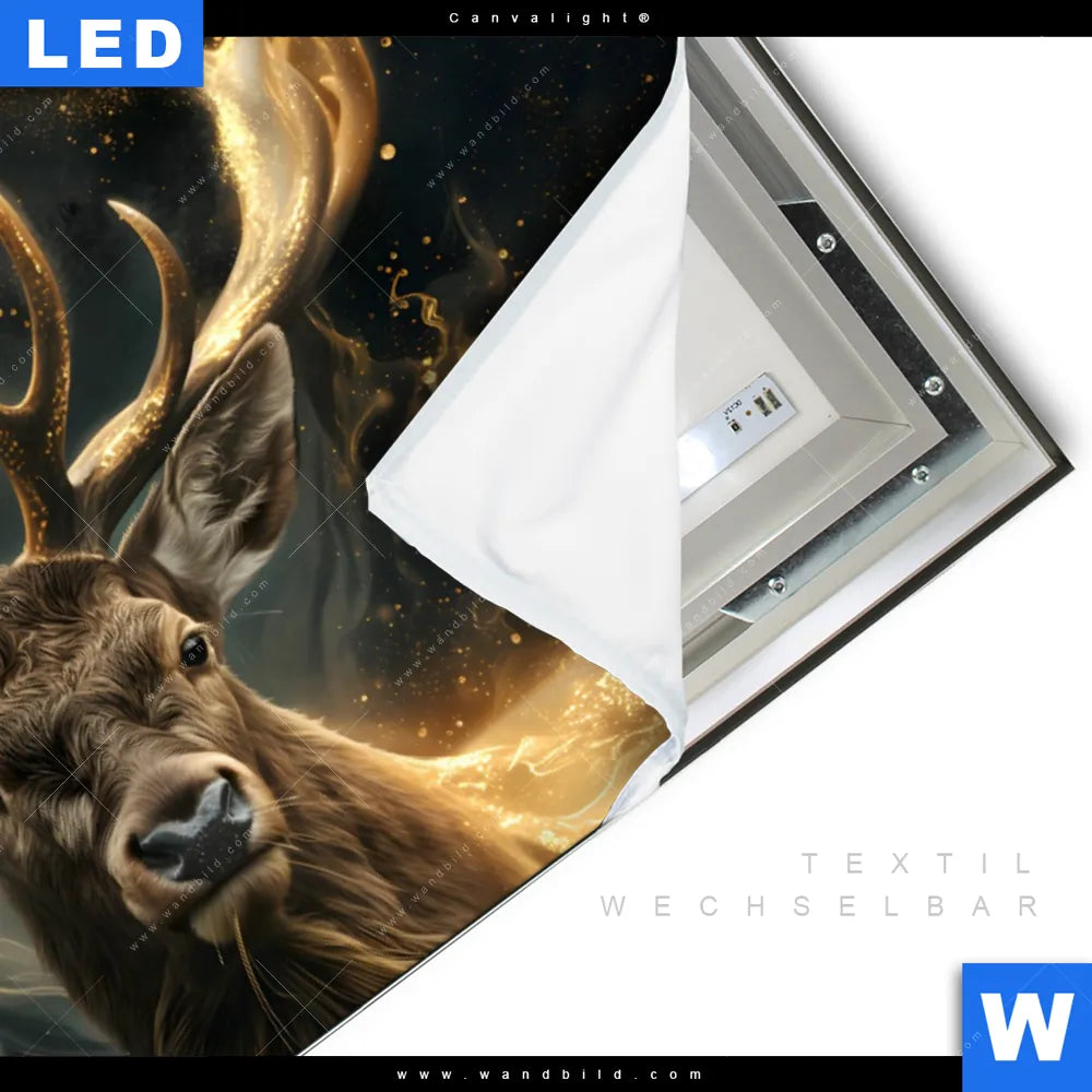 Canvalight® TEX Leuchtbild | Magischer Hirsch im Sternenlicht | Querformat
