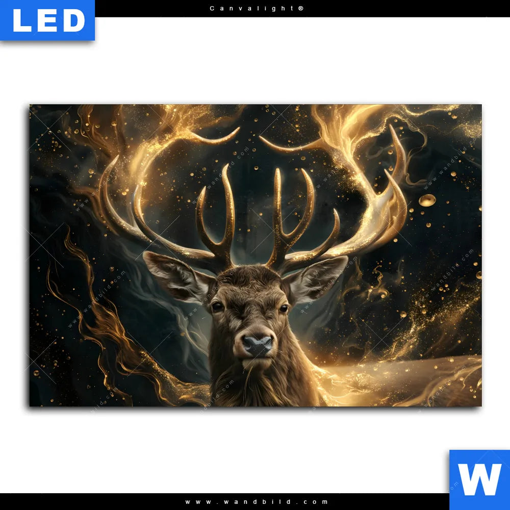 Canvalight® Leuchtbild | Magischer Hirsch im Sternenlicht | Querformat
