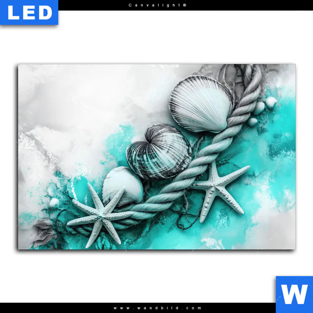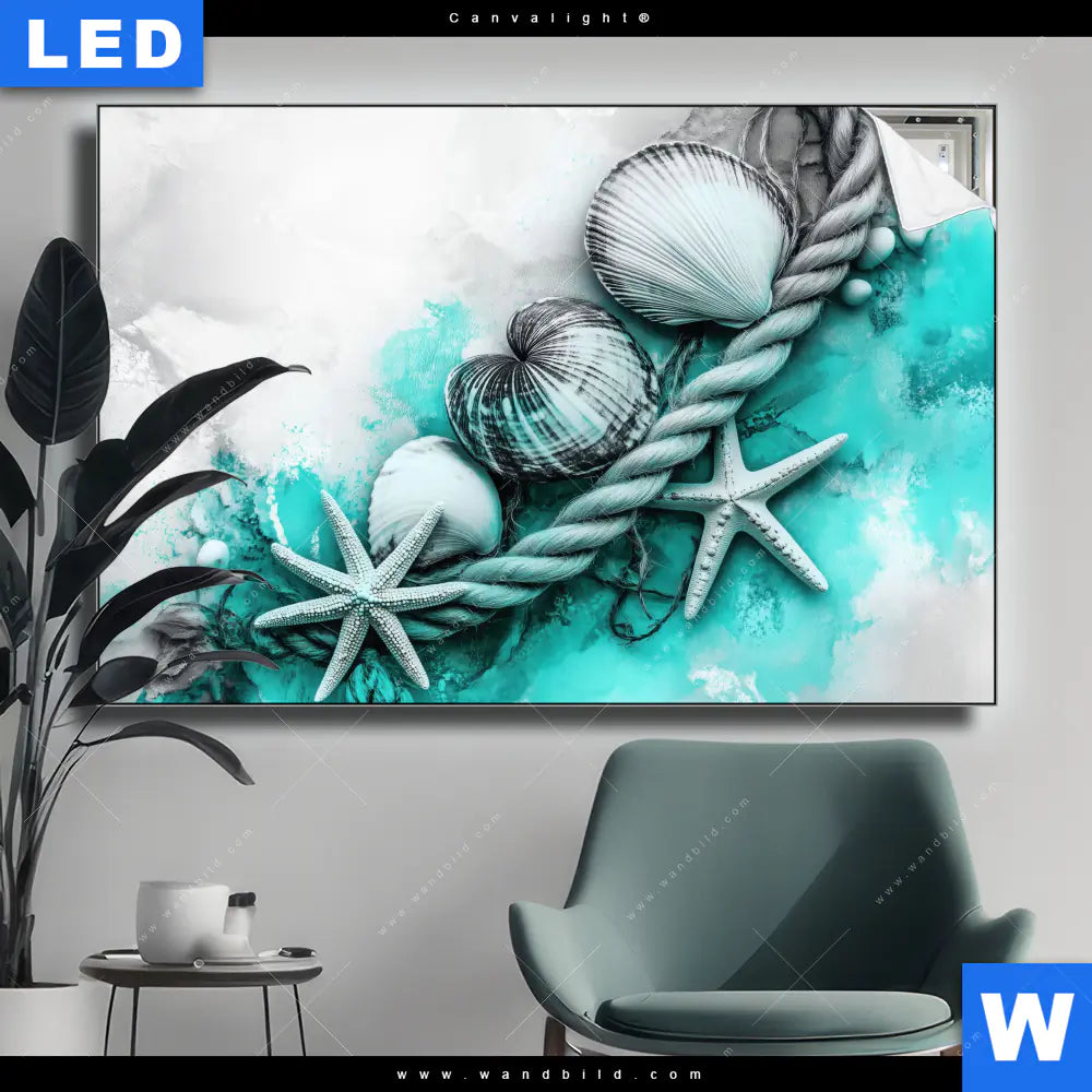 Canvalight® TEX Leuchtbild | Muscheln-Meereszauber in Türkis | Querformat
